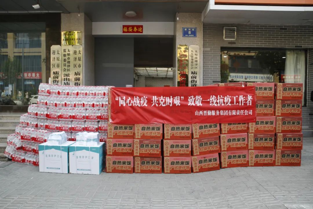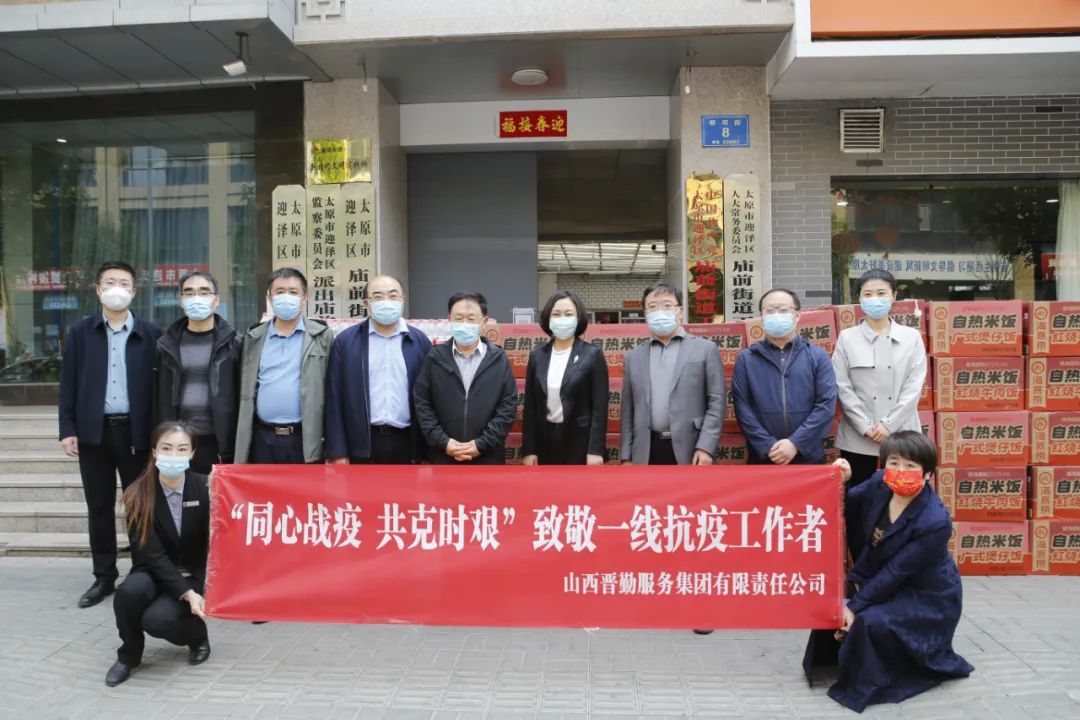 4月18日上午,晉勤集團(tuán)前往廟前街道看望慰問在疫情防控攻堅(jiān)戰(zhàn)中日夜堅(jiān)守、無私奉獻(xiàn)的一線工作人員,向他們致以親切的問候和崇高的敬意,并送去慰問物資自熱米飯1800盒、礦泉水1800瓶、N95口罩2020個(gè)。省機(jī)關(guān)事務(wù)管理局毛益民局長(zhǎng)、晉勤集團(tuán)黨委書記 董事長(zhǎng)楊文治及集團(tuán)所屬相關(guān)單位負(fù)責(zé)人參加慰問活動(dòng)。