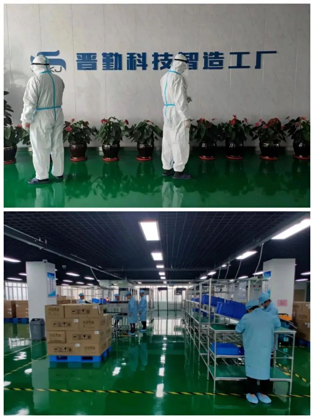 在晉勤科技智造工廠,員工們正在緊張有序的組裝生產(chǎn)智能防疫測(cè)溫設(shè)備,為我省做好疫情防控工作提供智慧檢測(cè)屏障。