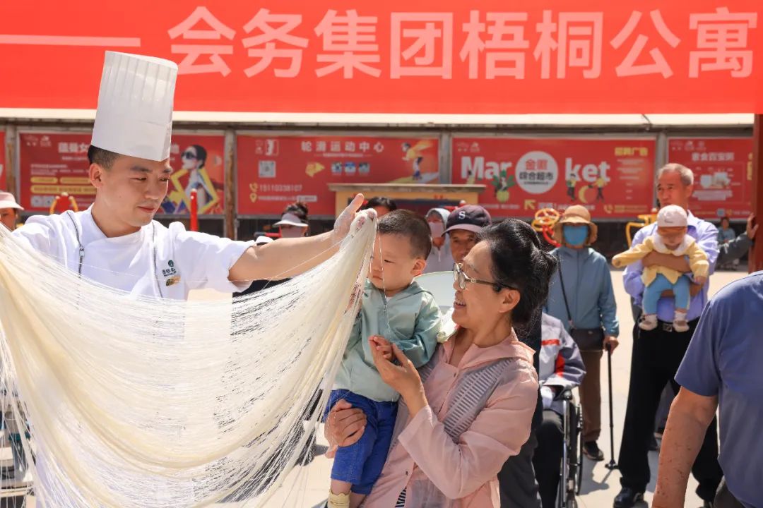 會(huì)務(wù)集團(tuán)梧桐公寓廚師現(xiàn)場(chǎng)展示龍須拉面絕活,達(dá)16384根。