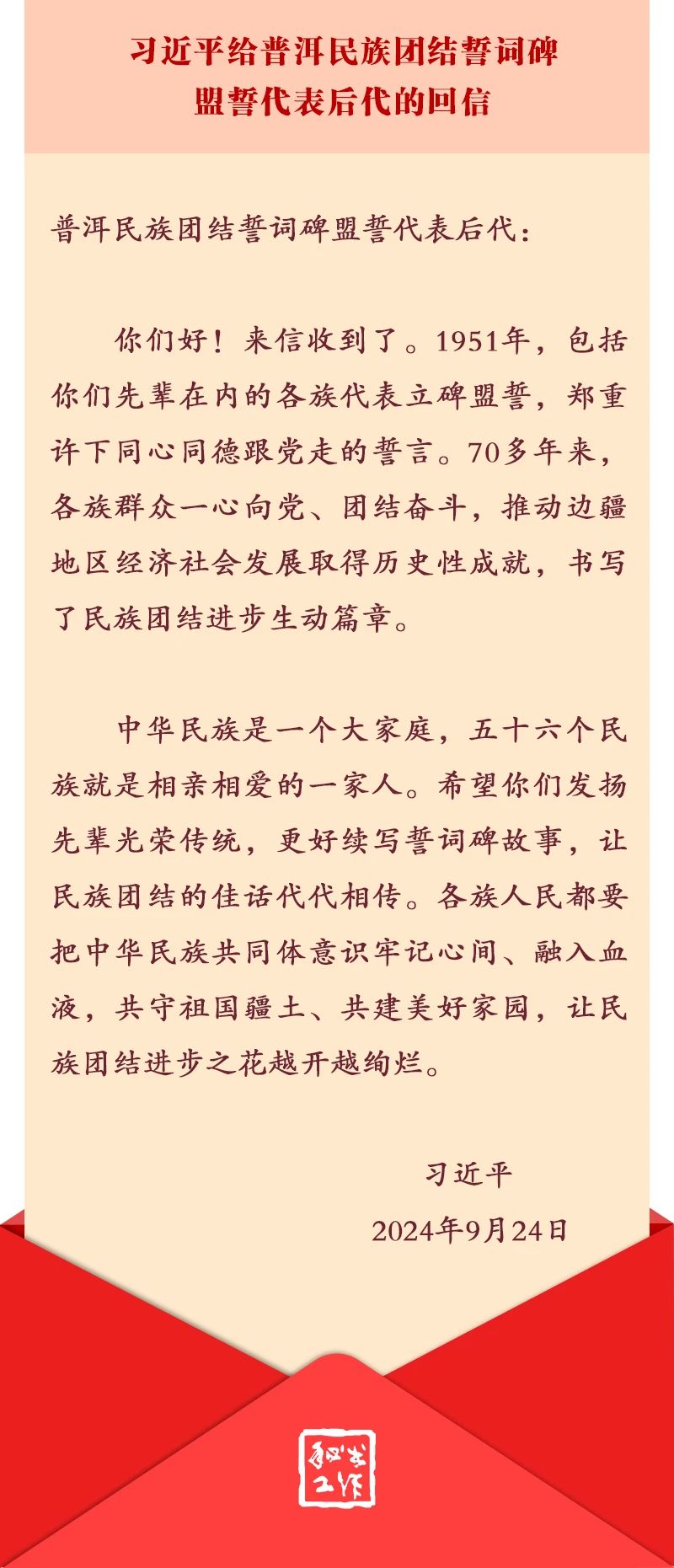 習(xí)近平回信勉勵(lì)普洱民族團(tuán)結(jié)誓詞碑盟誓代表后代